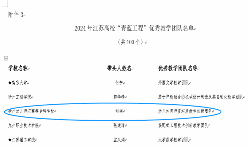 近日,江苏省教育厅发布了《2024年江苏高校“青蓝工程”培养对象名单公示》,校人事处处长、必一运动经理刘伟教授领衔的“幼儿体育团队培养教学创新团队”获批2024年江苏高校“青蓝工程”优秀教学团队培养对象,必一运动副经理闻年富副教授获批2024年江苏高校“青蓝工程”优秀青年骨干教师培养对象,实现了公司在该项人才项目中所获奖项的新突破。