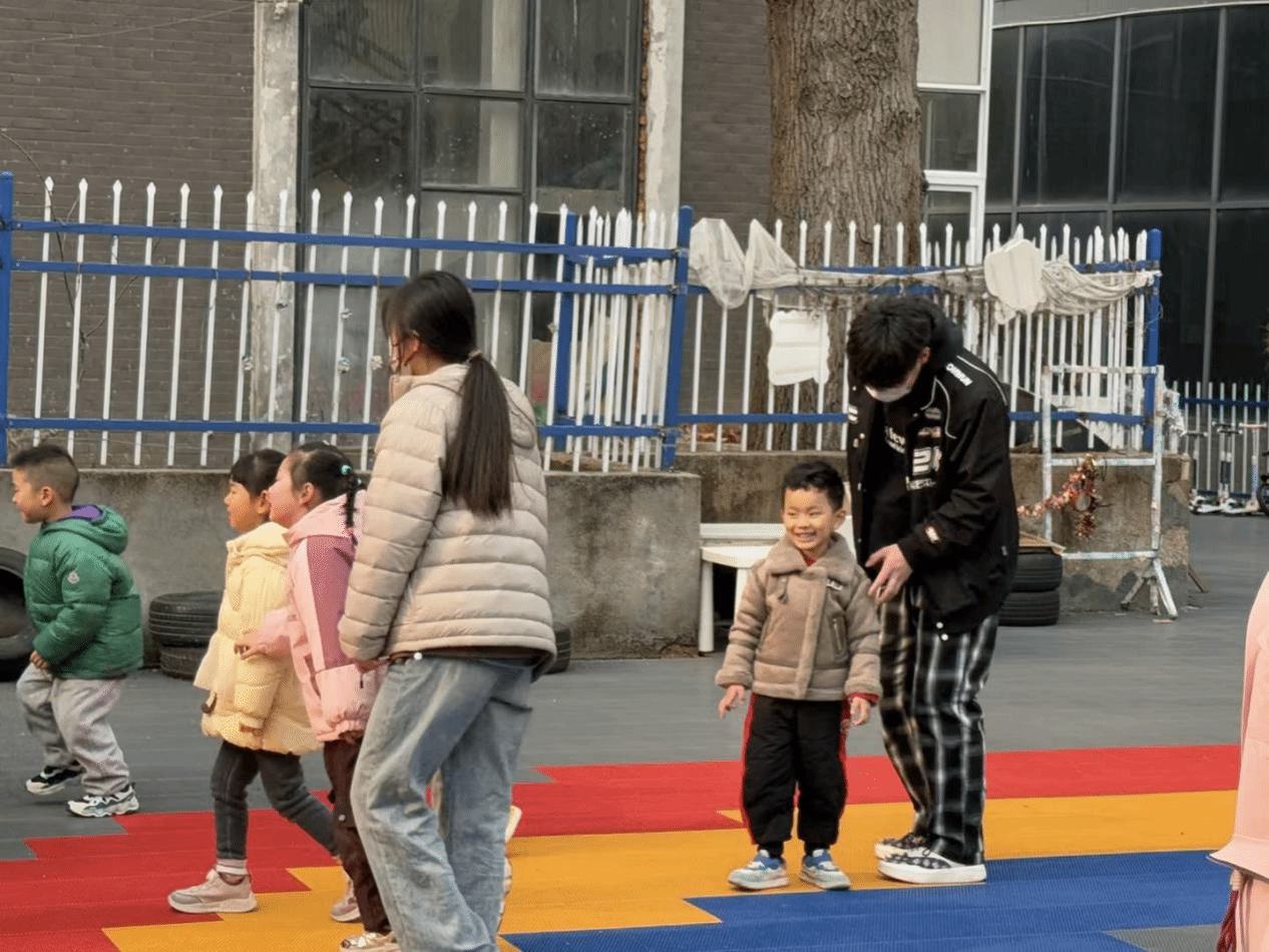活动当日,在体育游戏区,必一运动学子充分发挥专业特长,带领孩子们玩起了趣味接力赛。小小的身影奔跑在操场,你追我赶,欢笑声回荡在空中,孩子们在奔跑、跳跃中感受运动的快乐,志愿者们则在一旁耐心引导、加油助威,确保每个孩子都能安全地享受运动时光。