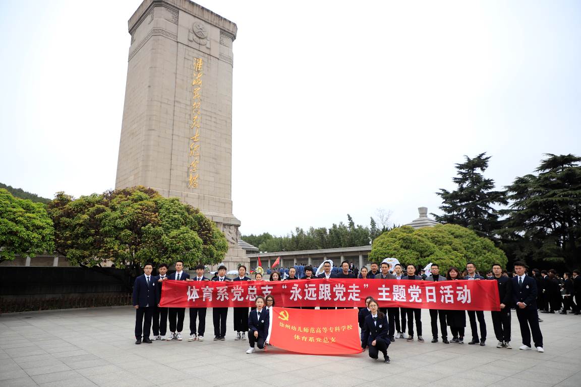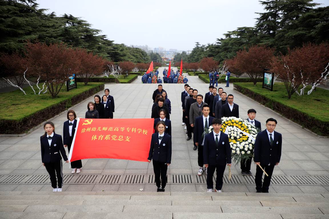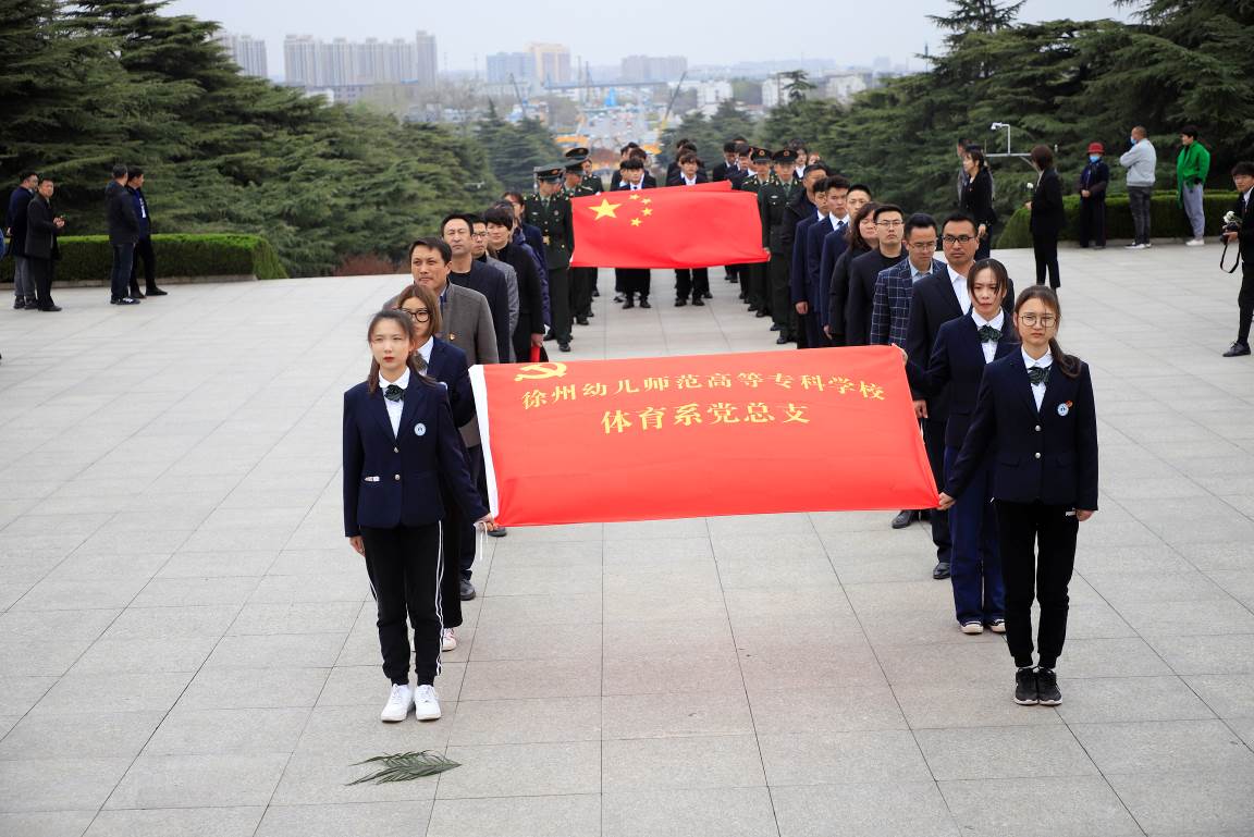 凤凰山东麓,苍葱翠柏掩映下的淮海战役烈士纪念塔高高耸立,巍峨肃穆。为庆祝中国共产党百年华诞,3月31日下午,体育系党总支组织全体教师党员、预备党员和入党积极分子来到淮海战役烈士纪念塔举行了主题党日暨清明祭扫活动,寻找红色足迹,祭扫活动由体育系党总支宣传委员殷枭老师主持。