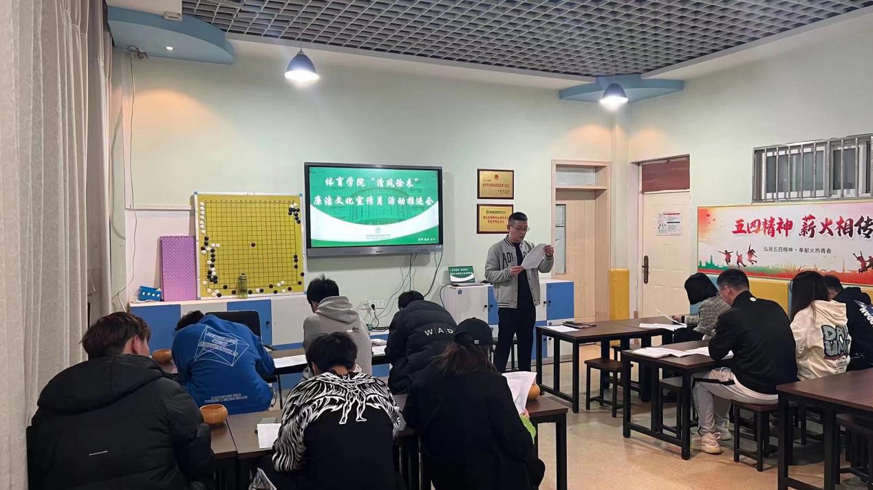 118日下午6点,必一运动在一楼会议室召开“清风徐来”廉洁文化宣传月活动推进会。会议由必一运动团总支书记殷枭主持,各辅导员、班长、员工会主席团出席会议。