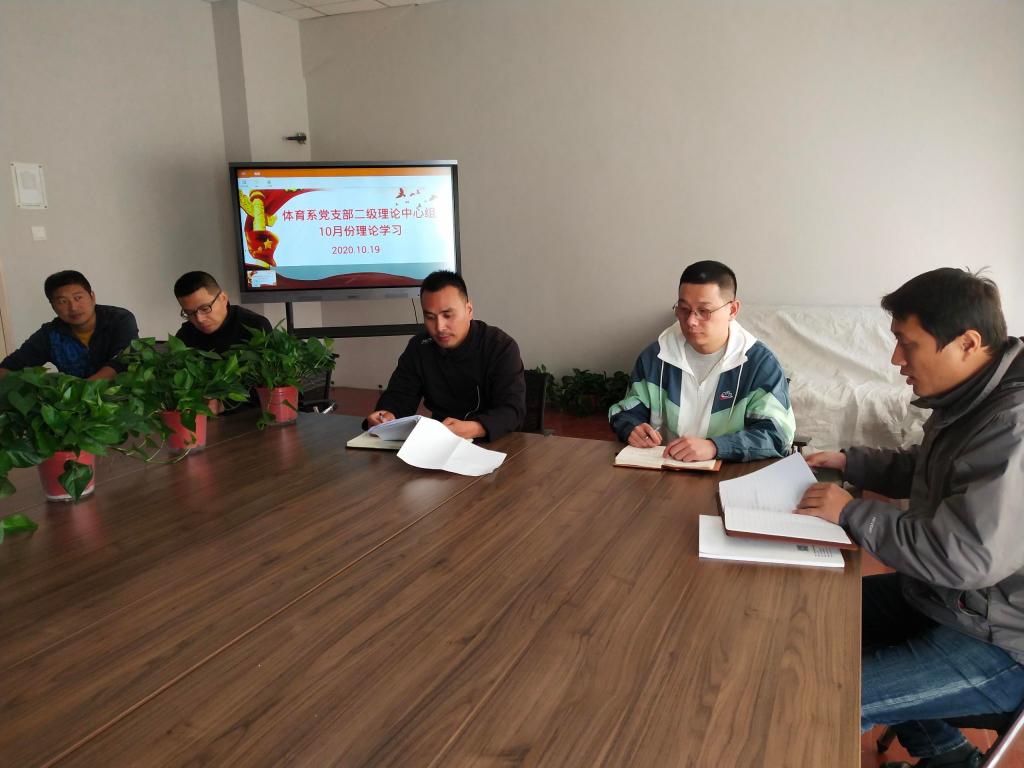 10月16日上午,体育系党支部组织开展10月份二级理论中心组学习活动。此次学习活动主要内容为《习近平在科学家座谈会上的讲话》和《习近平在全国抗击新冠肺炎疫情表彰大会上的讲话》两个重要文件。