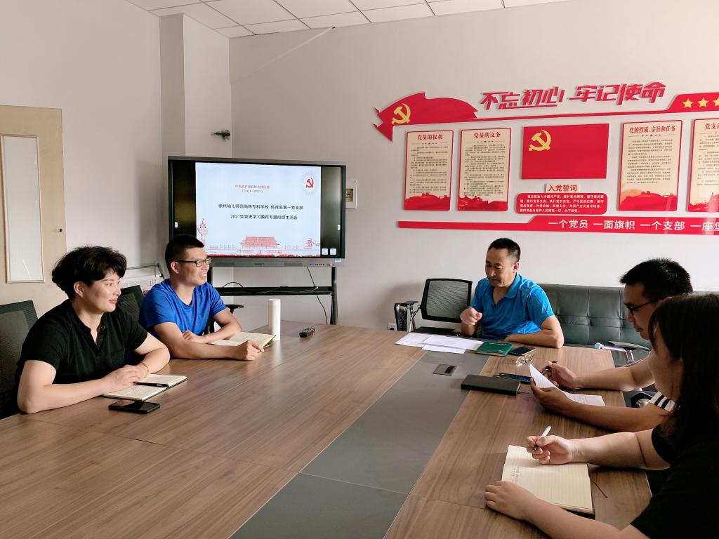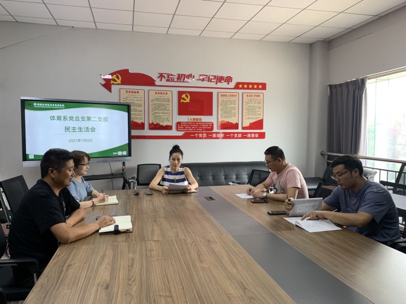 2021年7月8日下午,体育系党总支第一支部和第二支部全体成员分组在体育系会议室召开党史学习教育专题组织生活会,支部书记田国祥和马春梅主持会议。