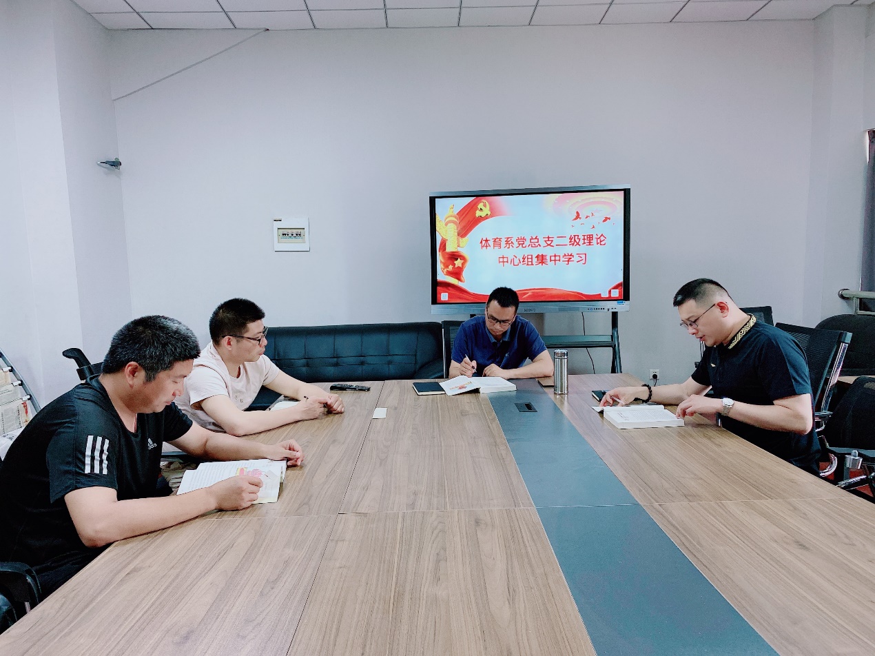 2021年6月7日上午,体育系党总支二级理论中心组在体育系会议室开展了党史学习教育专题学习活动,集中学习了《习近平新时代中国特色社会主义思想学习问答》,本次学习活动由党总支副书记马岗峰主持,宣传委员殷枭领学,全体支部委员参加了学习。