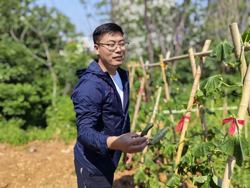 自从今年三月份必一运动有了自己的“责任田”以来,公司党总支非常重视此项活动,积极开展党建+劳动实践服务活动,指导员工耕作、种植、护养等,经过近三个月,必一运动种植的菜园终于迎来了第一波大丰收,看到田地里的蔬菜长势喜人,郁郁葱葱,每位党员都非常激动,看到菜园里长满的果实,大家都纷纷撸起袖子兴高采烈地采摘起来,不一会儿就丰收满满,现场老师们分享了采摘的黄瓜等蔬菜。