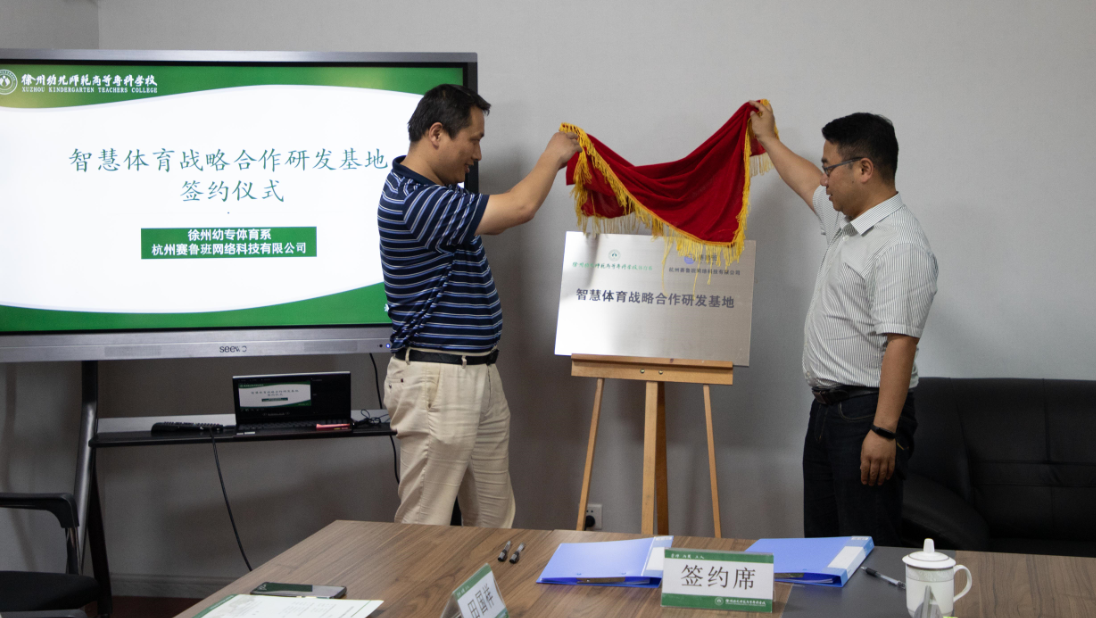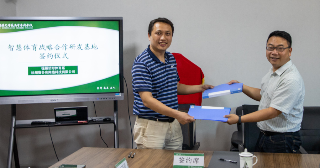 6月8日下午,徐州幼专体育系-杭州赛鲁班网络科技有限公司“智慧体育战略合作研发基地”合作协议签约仪式在体育系会议室举行,杭州赛鲁班网络科技有限公司副总裁何杰、销售总监夏力、产品经理李拥军、教研主管徐永顺,我系系主任刘伟、副主任闻年富、专业带头人田国祥教授、辛振海教授、实验中心蔡阜生老师参加活动,刘伟主任主持签约仪式。