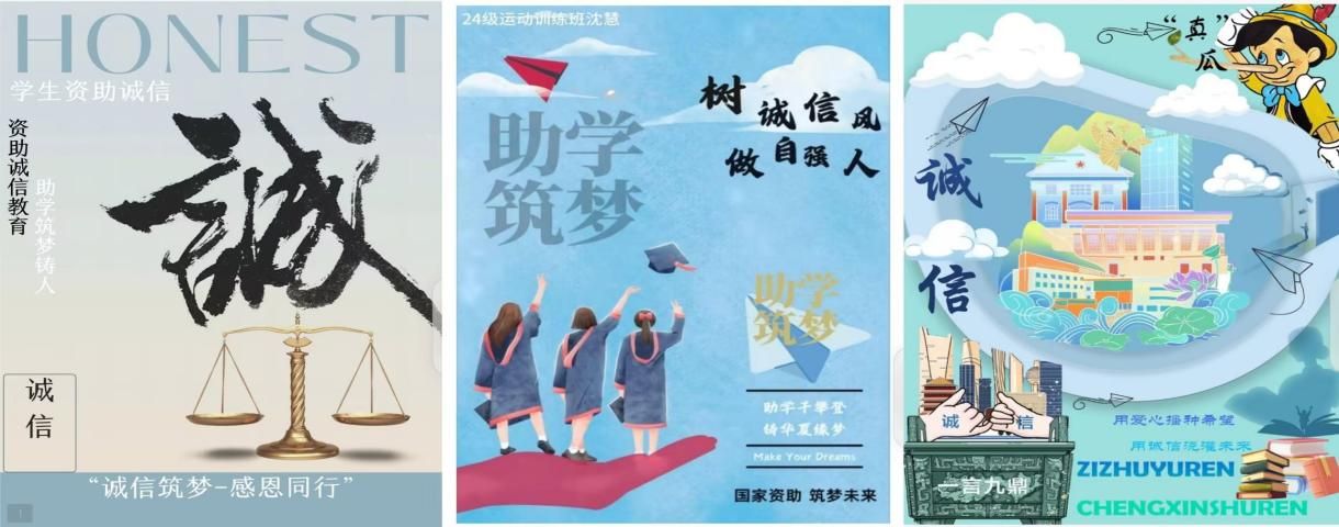 这些作品形式多样,内容丰富,生动诠释了体育学子对“诚信”这一中华传统美德和社会主义核心价值观的理解与践行。宣传画构思巧妙,视觉冲击力强;书法作品笔力遒劲,格言警句跃然纸上;征文作品情感真挚,字里行间流露出对诚信价值的认同和对国家资助政策的感恩之情。