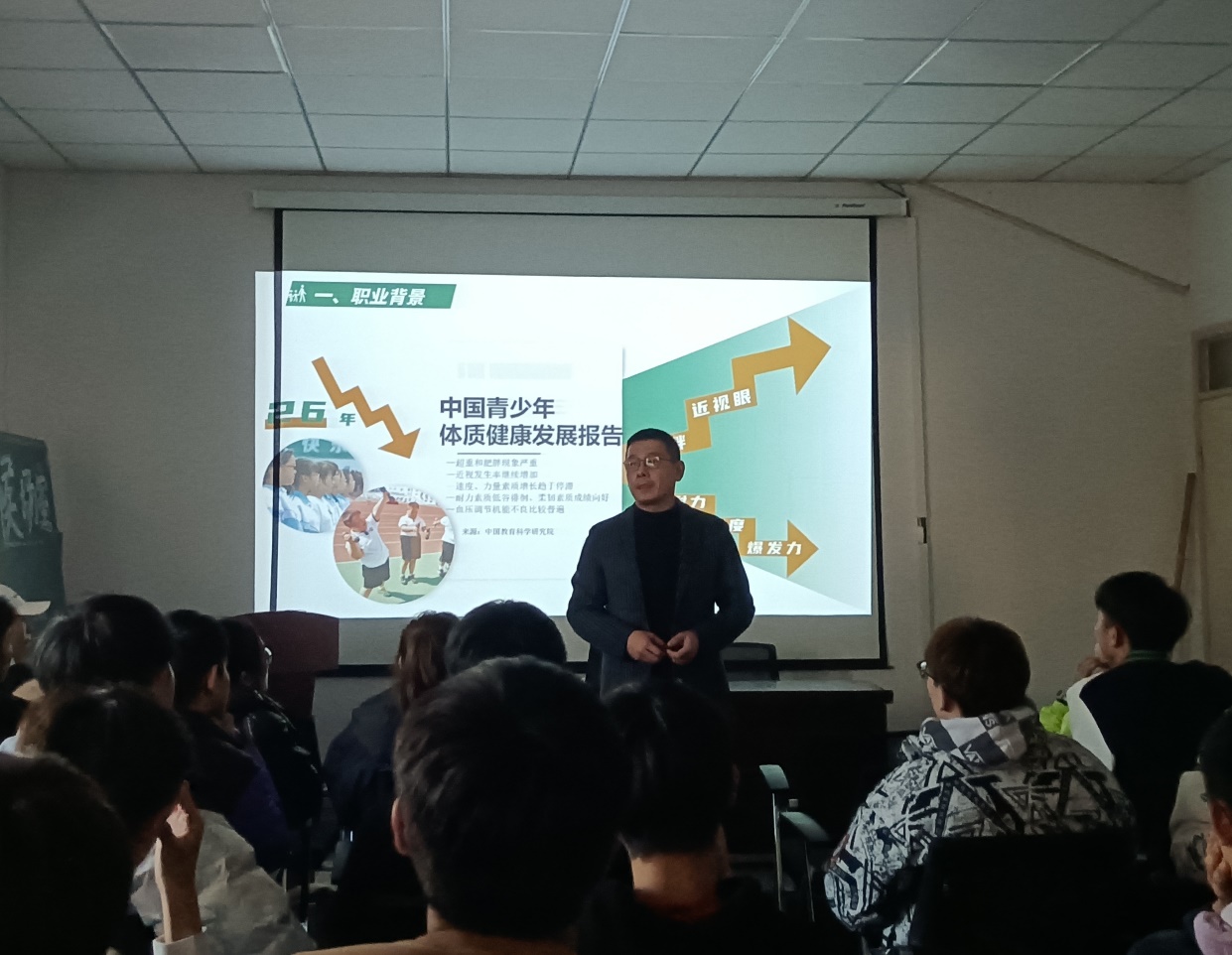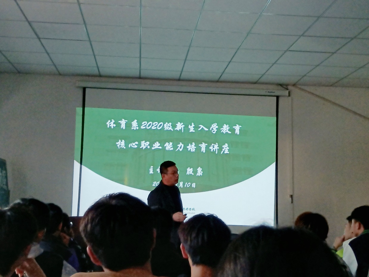 11月10号下午,体育系在体育场二楼报告厅举行了2021级新生入学教育第四讲,此次入学教育由体育系团总支书记殷枭老师主讲,体育系2021级全体新生参加。