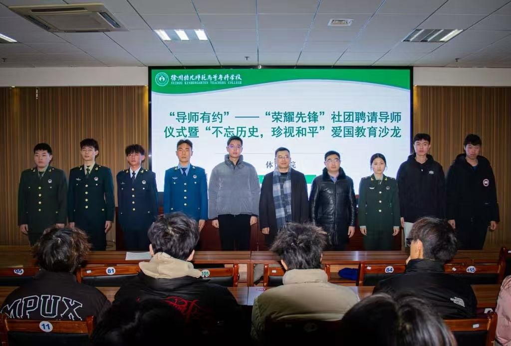 12月12日,公司于老员工活动中心404开展“导师有约”——“荣耀先锋”社团聘请导师仪式暨“不忘历史,珍视和平”爱国主义教育沙龙,校员工工作处武装部负责人戴亮亮、公司党总支副书记刘东亮、辅导员徐林楠、行政秘书王旭婕出席,会议由辅导员罗吉席主持。