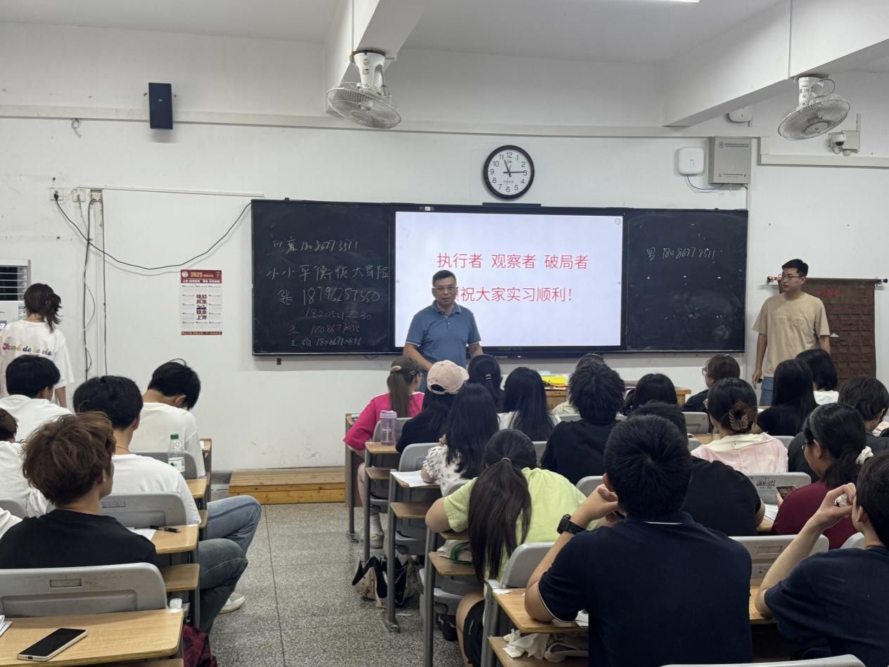 闻年富在动员讲话中强调:"岗位实习是应用型人才培养的关键环节,同学们要主动将课堂知识转化为实践技能,严守职业规范,展现体院学子的责任担当。"他特别提醒员工强化安全意识,筑牢"安全第一、责任为先"的实习防线。