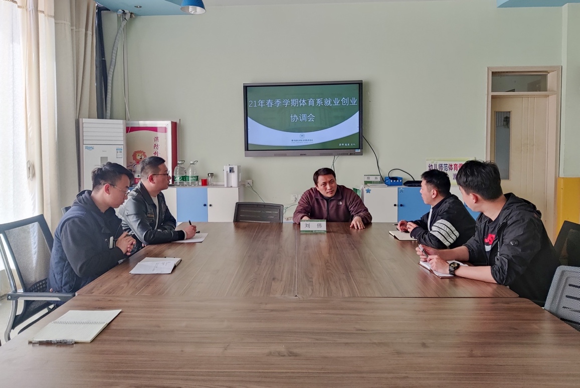 4月1日上午,21年春季学期体育系就业创业协调会在一楼会议室召开。会议由体育系主任刘伟主持,团总支书记殷枭、教师朱闻松,王尊阳,张其星,赵一栋也参加了会议。