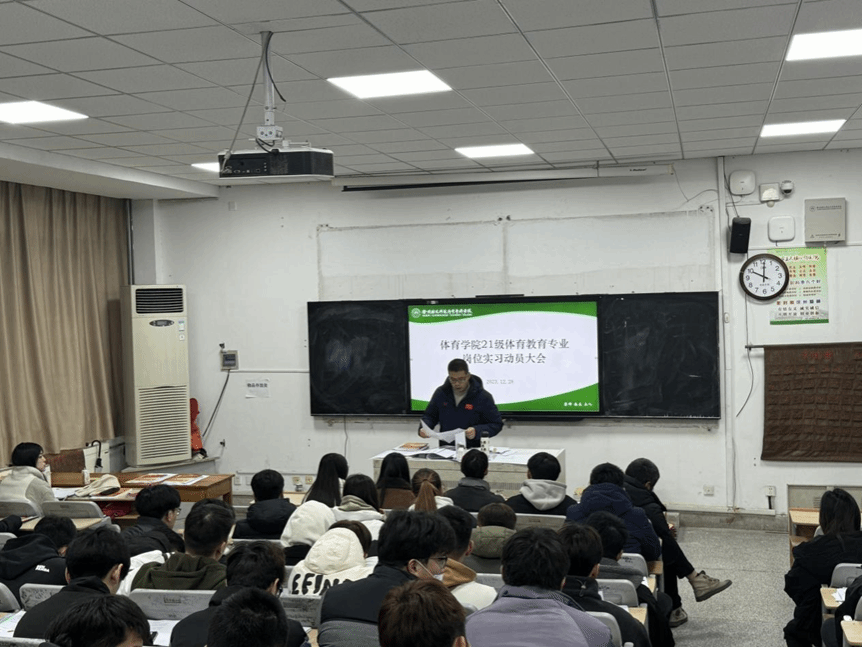 为深入贯彻落实党中央“稳就业”“保就业”的重要工作部署,帮助2024届毕业生做好就业实习工作,进一步引导毕业生树立正确的就业观,充分调动毕业生就业积极性,进而树立就业信心,提升就业质量。12月28日,必一运动在洞山校区综合楼阶梯教室一召开2024届毕业生就业实习动员大会。必一运动副经理闻年富、党总支副书记刘东亮、辅导员罗吉席、部分就业实习指导教师及必一运动2024届全体毕业生参会,会议由教学秘书孙艺侨主持。