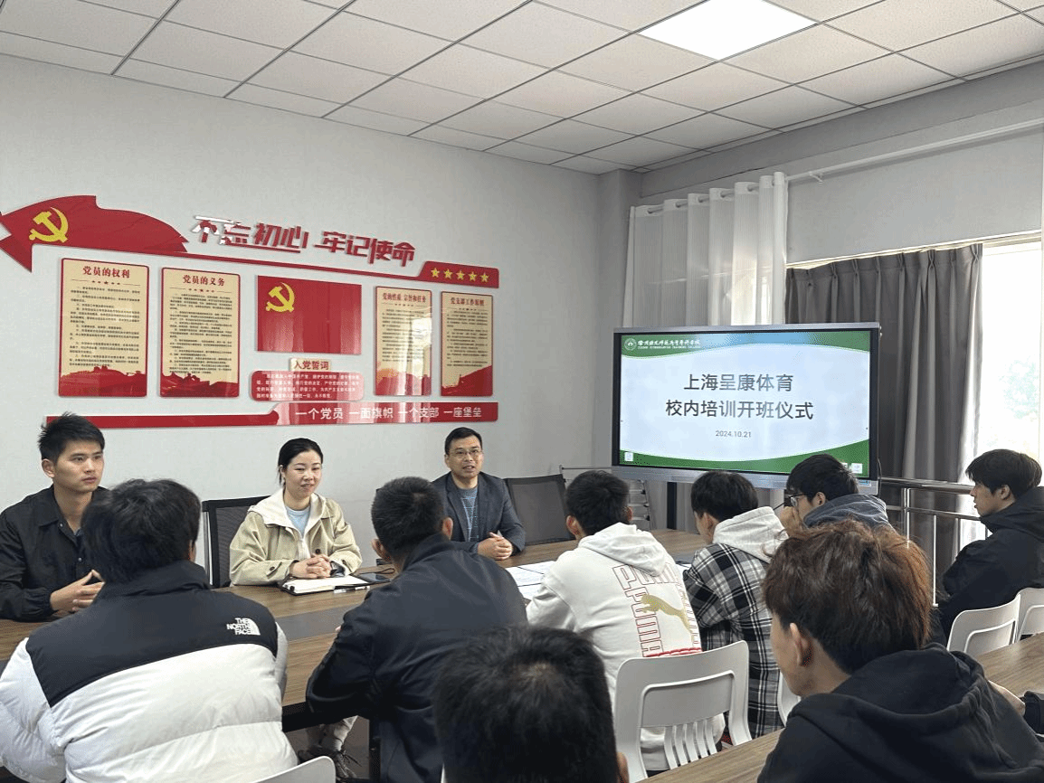 2024年10月21日,必一运动举办上海呈康体育发展有限公司校内培训开班仪式。必一运动经理李海芸、党总支副书记刘东亮、上海呈康体育培训教练王鸿凯及22级体育教育班级篮球专业员工参加了本次活动,活动由刘东亮主持。