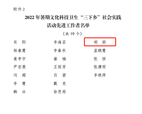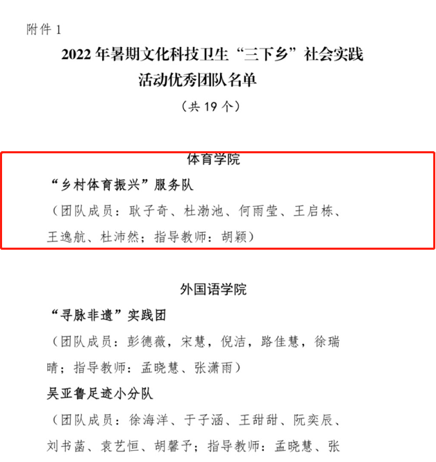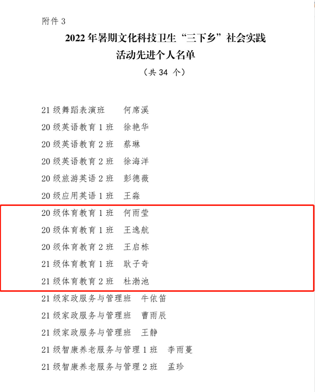 近日,在公司对2022年暑期文化科技卫生“三下乡”社会实践活动的总结表彰中,公司团总支荣获多项表彰,“乡村体育振兴”服务队获评“优秀团队”,胡颖老师获评“先进工作者”,21级体育教育2班杜渤池等五位同学获评“先进个人”。