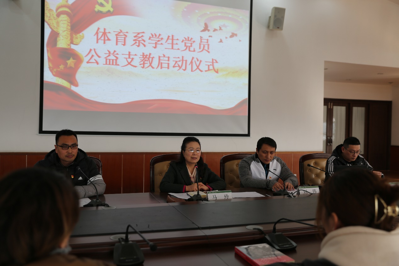 1月11日下午,体育系党支部在洞山半圆厅会议室举办体育系员工党员公益支教启动仪式,参加会议的有公司党委副书记马玲、体育系党支部书记刘伟、副书记马岗峰、宣传委员殷枭以及部分党员教师和3名员工预备党员,会议由马岗峰副书记主持。