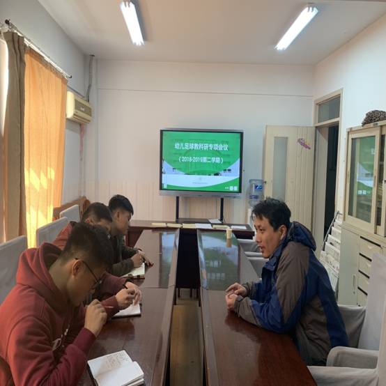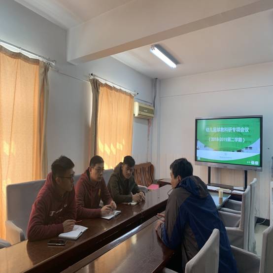 3月18日下午1点,体育系在洞山体育场会议室召开了2018-2019第二学期幼儿足球专项会议,对本学期幼儿足球相关工作进行了研讨。会议由体育系刘伟主任主持,殷枭、杨振、蔡阜生三位老师参加了会议。