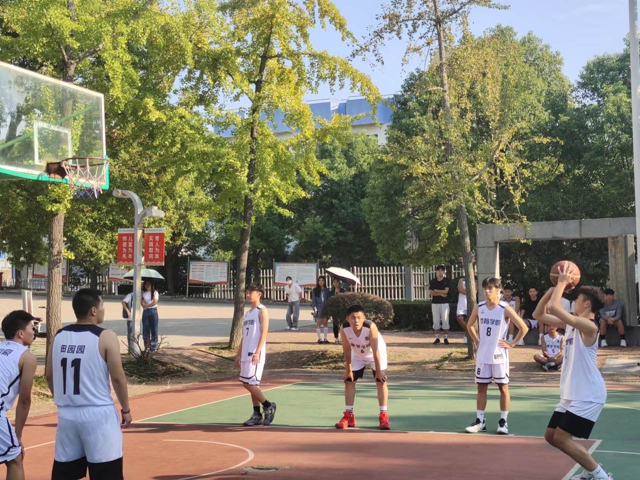在全场人员的热烈掌声下,新生篮球赛正式开始了。赛场上,球员们挥洒汗水,充满青春活力;肆意奔跑,充满潇洒超逸。比赛是激烈的,也是友好的,遵守比赛规则,牢记体育精神,在赛场上展现最美的风景,赛出最高的水平。球员们精彩的表现必定会带给我们场场视觉盛宴。