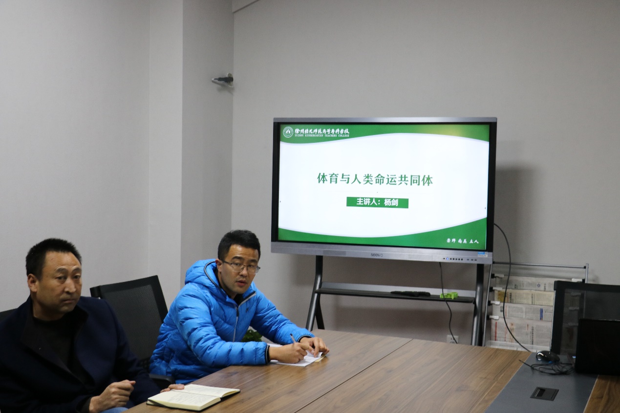 为深入理解习近平新时代中国特色社会主义思想,贯彻落实总书记关于体育工作的重要论述,11月25日下午,体育系举行“体育与人类命运共同体”学术报告,特邀华东师范大学体育与健康公司杨剑教授进行题为“体育与人类命运共同体”的学术报告。体育系全体老师参加了活动,活动由体育系主任刘伟主持