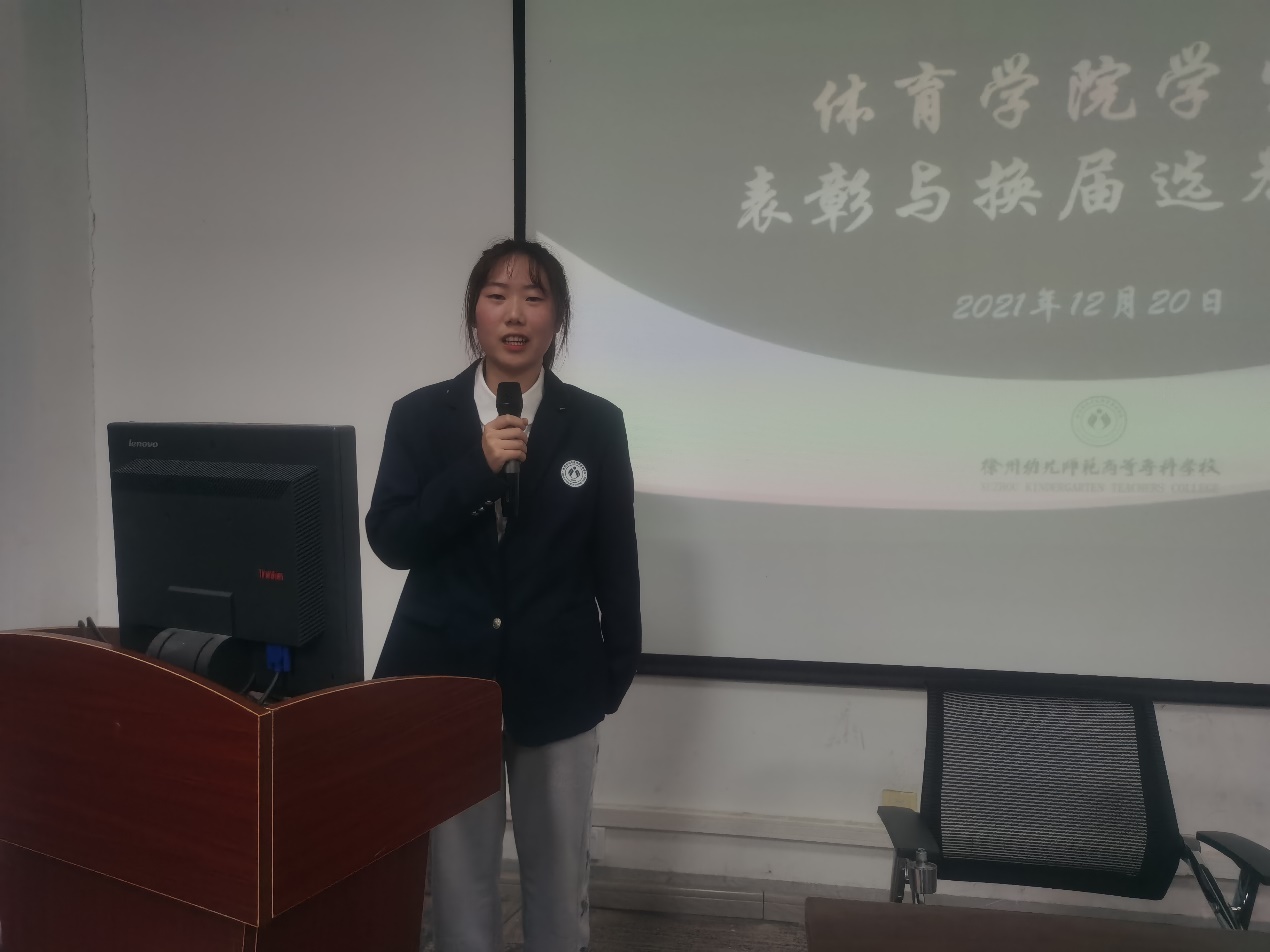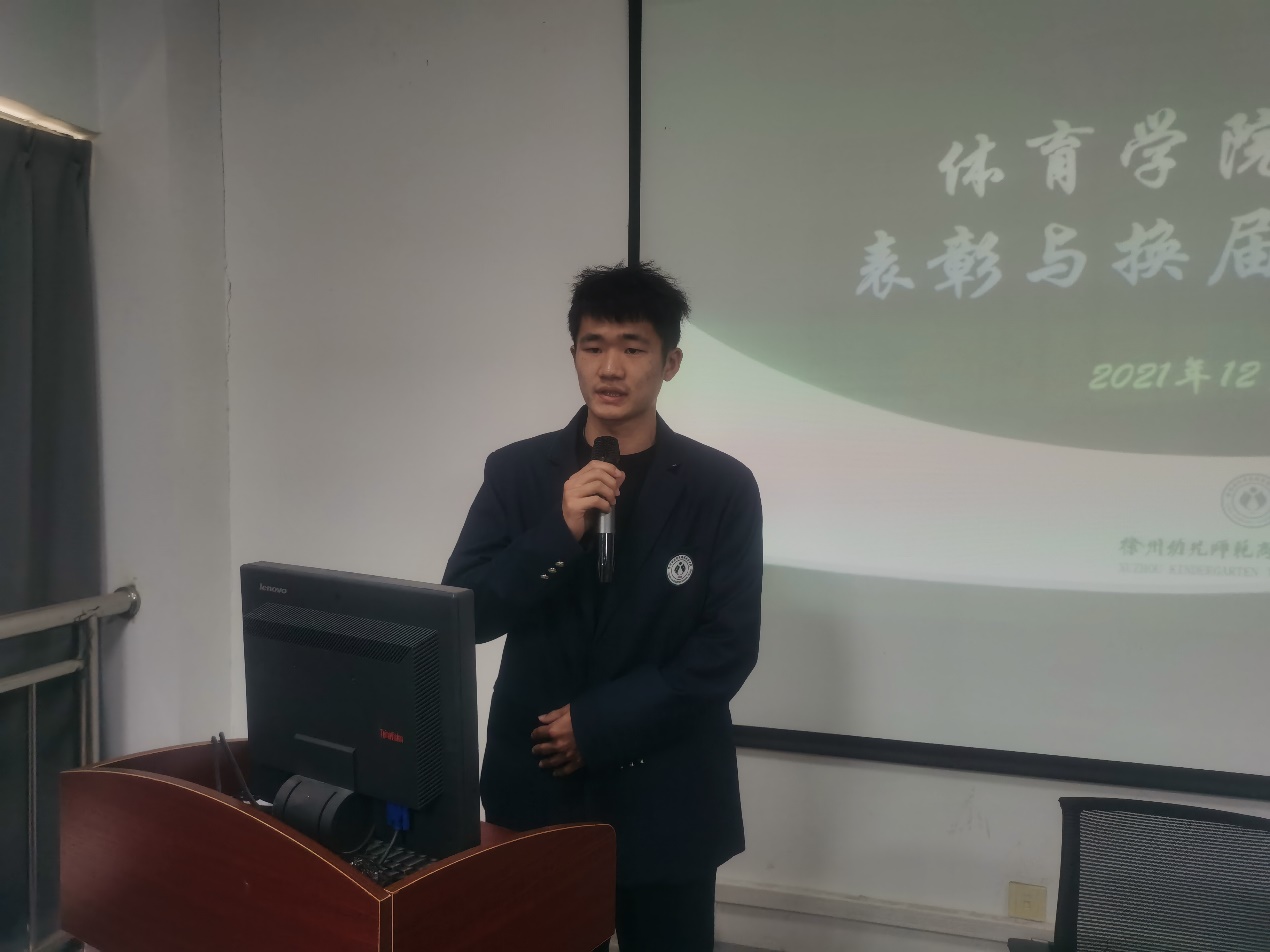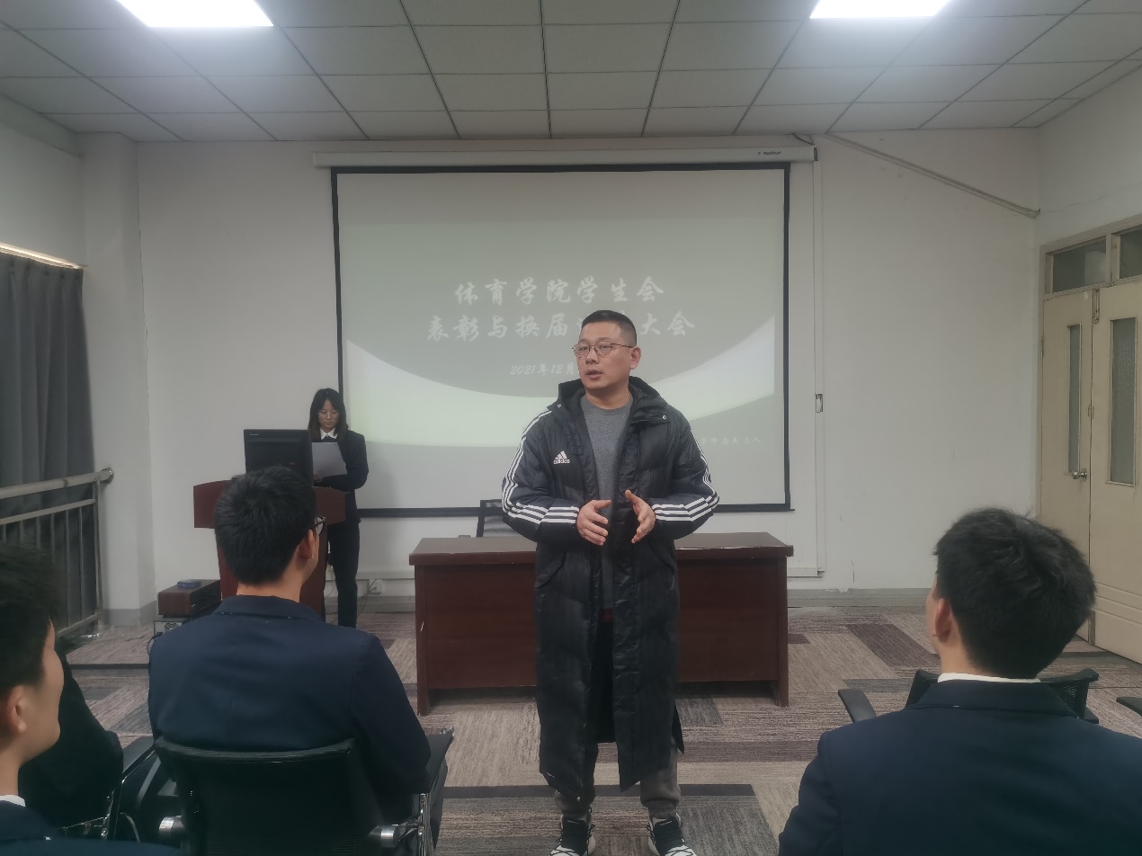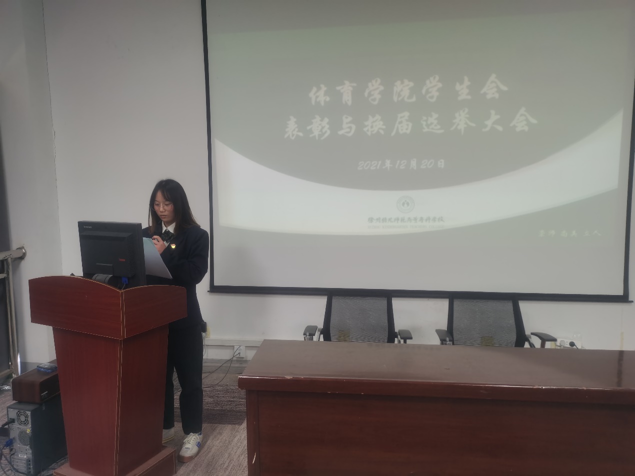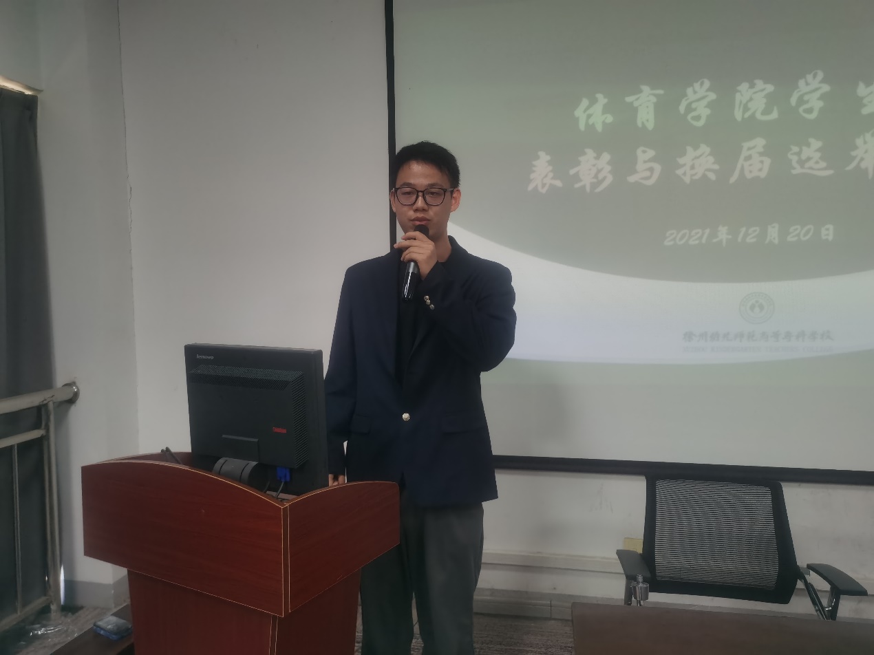 此次大会的召开旨在总结2021年度员工会的工作情况并完成新一届员工会主席团的选举工作。会上,殷枭老师首先对员工会一年来的工作表现给予了充分肯定和衷心感谢,随后对荣誉主席、荣誉部长、优秀员工会干部和先进个人依次进行表彰。随后,在公开、公平、公正的原则下,经竞选演讲、民主投票及综合评定,产生了新一届必一运动员工会主席团,他们分别是20级体育教育2班张杰、20级体育教育1班王逸航和20级体育教育1班卢颖。最后,殷枭老师对三位主席团新晋成员表示了祝贺,并提出了殷切的希望。