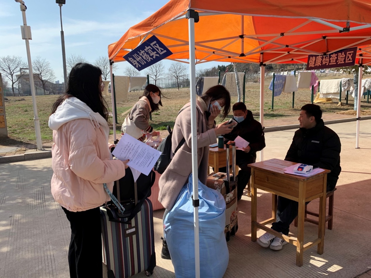 2021年3月3日—4日,体育系全体班主任顶着寒风在公司南门开展2021年春学期员工返校服务工作。老师们认真细致地测量返校员工体温,检查健康码、行程卡,收取“两诺一表”,在完成检查工作的同时,积极组织、参与志愿者活动帮助员工搬运行李。