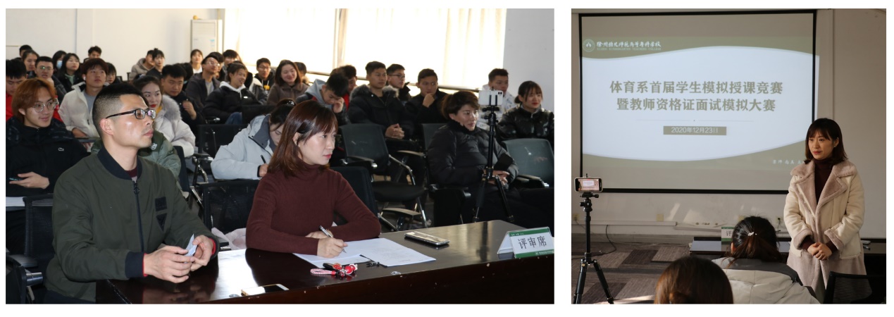 为丰富体育系员工的教育实践体验,提升教育实践效果,感受教团队格证面试的实战氛围,提前熟悉教团队格证面试考核流程,增强员工考场应变能力,12月23日在体育场多功能教室举办了首届员工模拟授课竞赛暨教团队格证面试模拟决赛,大赛邀请了学前与特殊教育教育公司宋琛琛老师担任大赛评委。