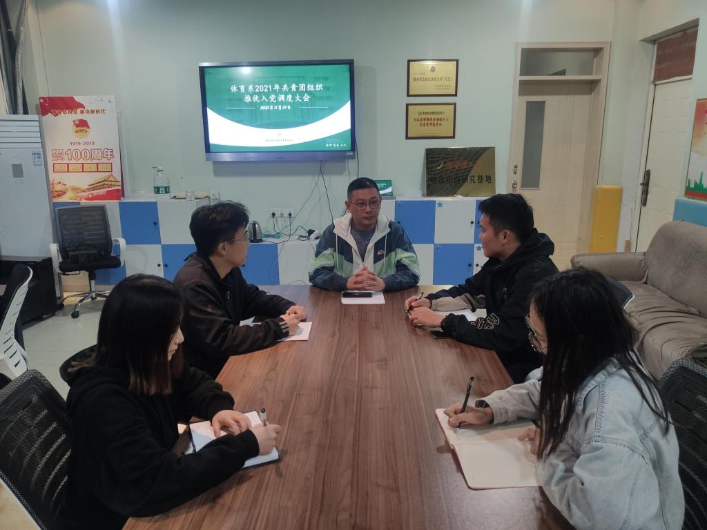 2021年11月1日晚上7点30分,体育系召开了2021年共青团组织推优入党工作筹备会,员工会主席卜一凡、副主席寇子恒、史可以及组织部部长李家婷参会。会议由体育系团总支书记殷枭主持。