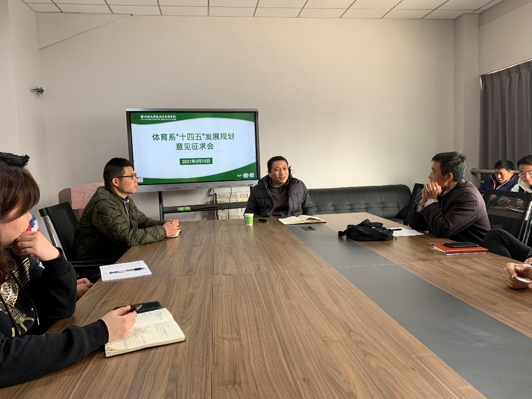 3月10日下午,体育系在洞山田径场会议室召开“十四五”发展规划意见征求会。体育系全体教师参加会议,会议由体育系主任刘伟主持。