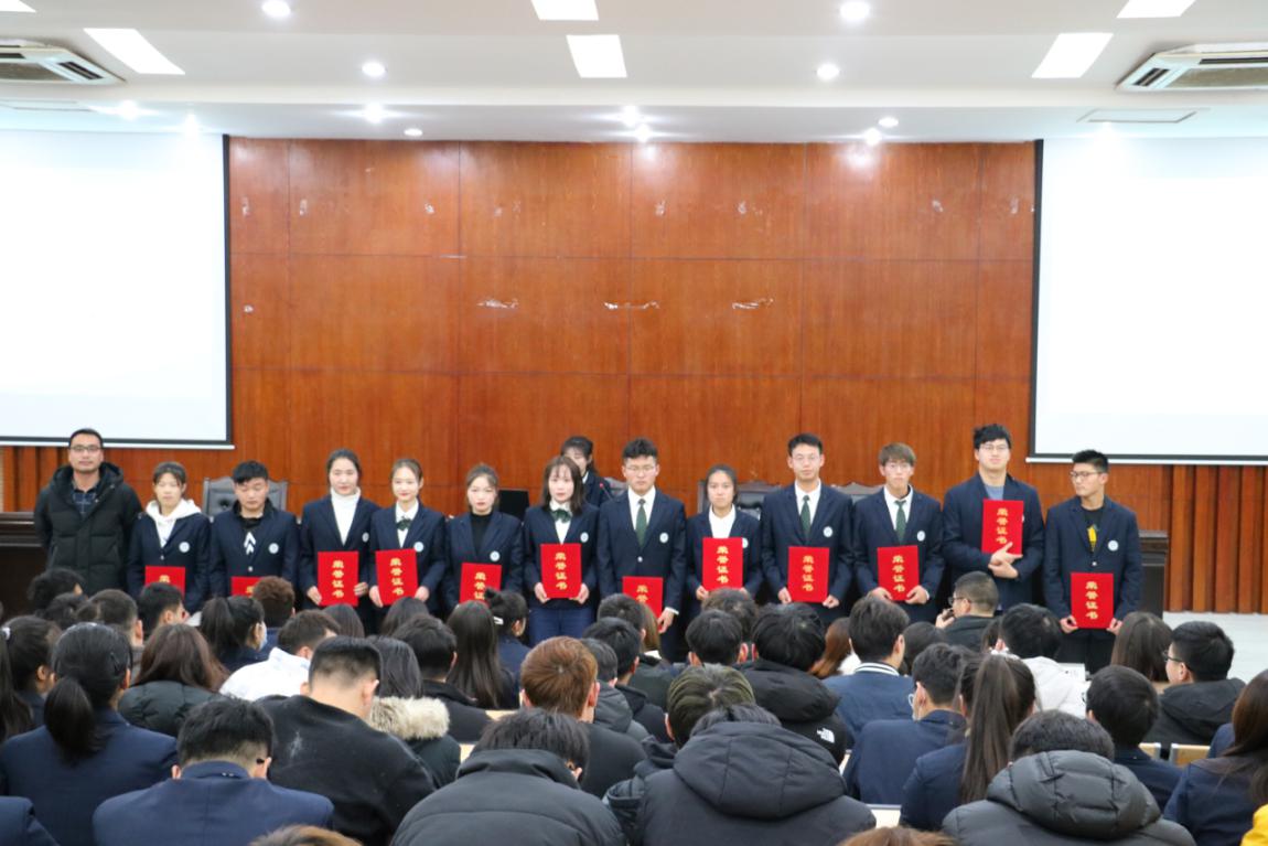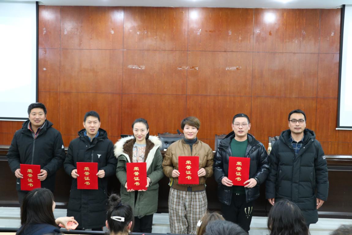 首先大会进行第一项议程,由殷枭老师对本年度联系我们进行总结汇报,随后对先进教师和表现优异的同学进行表彰,获奖的老师和同学脸上洋溢着灿烂的笑容,这也是对他们一年来辛勤付出的肯定,各位领导为他们颁了奖。闻主任向全系员工解读了专转本的政策。