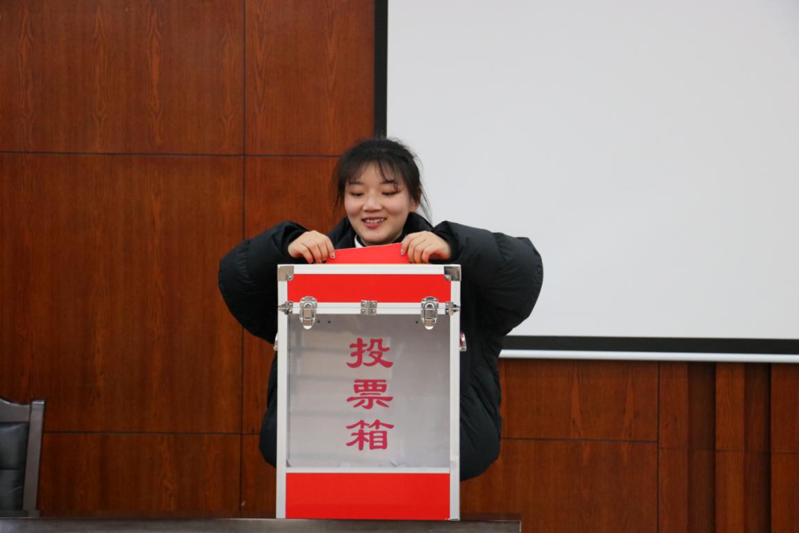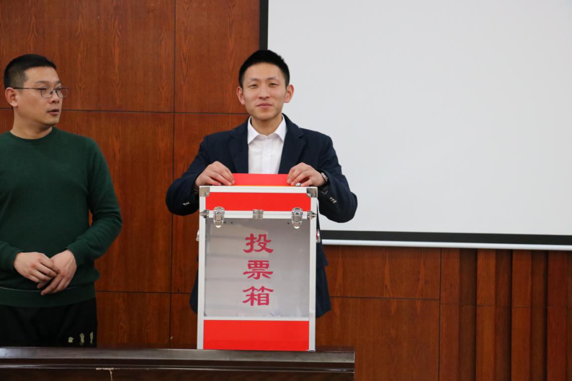 大会第二项议程是体育系员工会主席换届选举。殷枭老师宣布了换届的背景和原则,员工会主席主持了换届选举的整个过程,每个候选人进行个人演讲之后,全系员工进行公开投票选举和唱票。