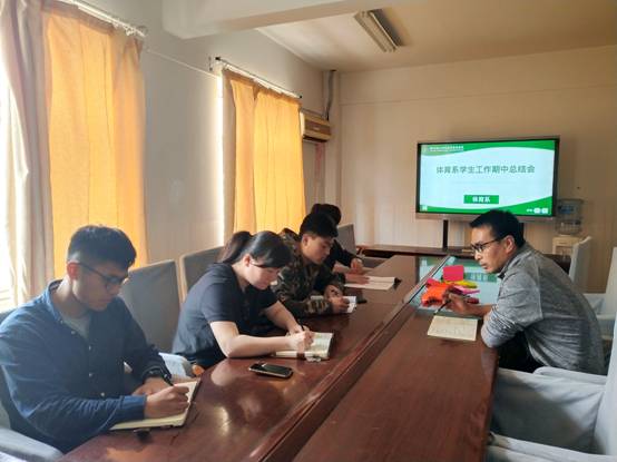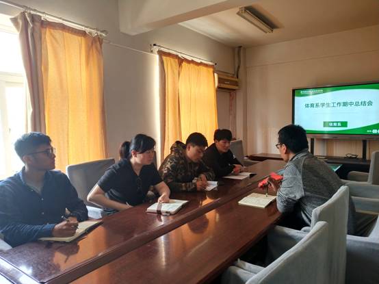 根据体育系员工工作计划的安排,体育系于5月14日上午在体育系会议室举行了体育系班主任期中总结会。会议由马岗峰老师主持,体育系全体班主任参加了此次会议。