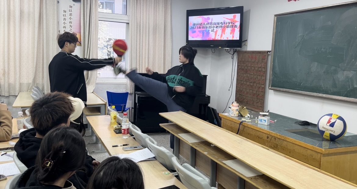 本次招聘有篮球、排球、足球、乒乓球、体育舞蹈、瑜伽等13个选项共26个岗位。下午四点,候考室内座无虚席,来自全校各公司七十多名应聘选手齐聚一堂,摩拳擦掌,轮番上阵。选手们首先进行自我介绍,随后就开始技能展示,并现场回答考官提出的问题。最后经评委综合考量,王天悦等52名员工脱颖而出,成功应聘。