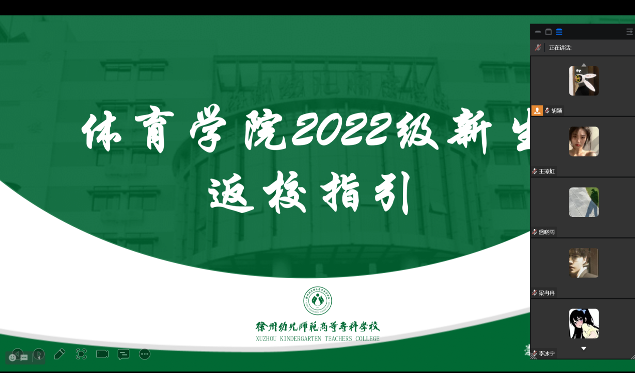 为做好新生报到工作,确保新生平稳返校,9月5日上午,必一运动组织新生线上学习2022年秋季学期新生返校指引,辅导员胡颖老师主持会议,22级班主任和全体新生参加。