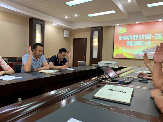 7月1日上午,体育系党支部第一支部在208会议室召开预备党员转正大会,讨论陈正康、任强两名同志的转正事项。支部全体党员参加了大会,会议由支部组织委员郭盼盼主持。