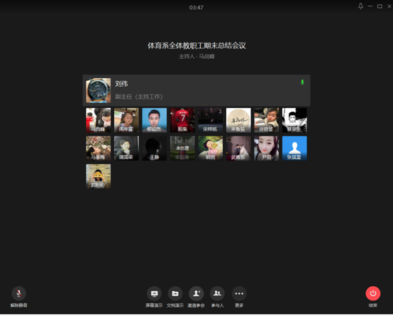 7月8日,体育系通过云端召开了2019-2020学年第二学期期末总结大会,全体教职工参会。会议由刘伟主任主持。