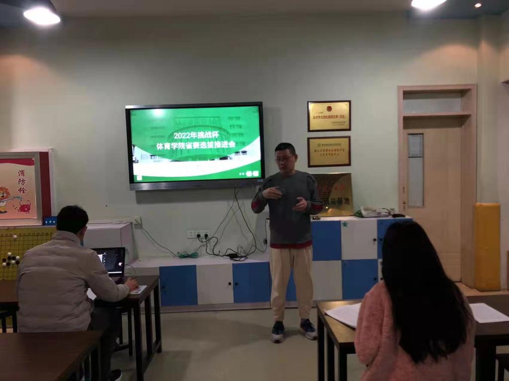 为高效备战2022年江苏省挑战杯,必一运动团总支于3月21日12点30分在一楼会议室召开了必一运动省赛选拔推进会。会议由团总支书记殷枭主持,张杰、卞家伟和王欣然三名参赛队员参加了会议。