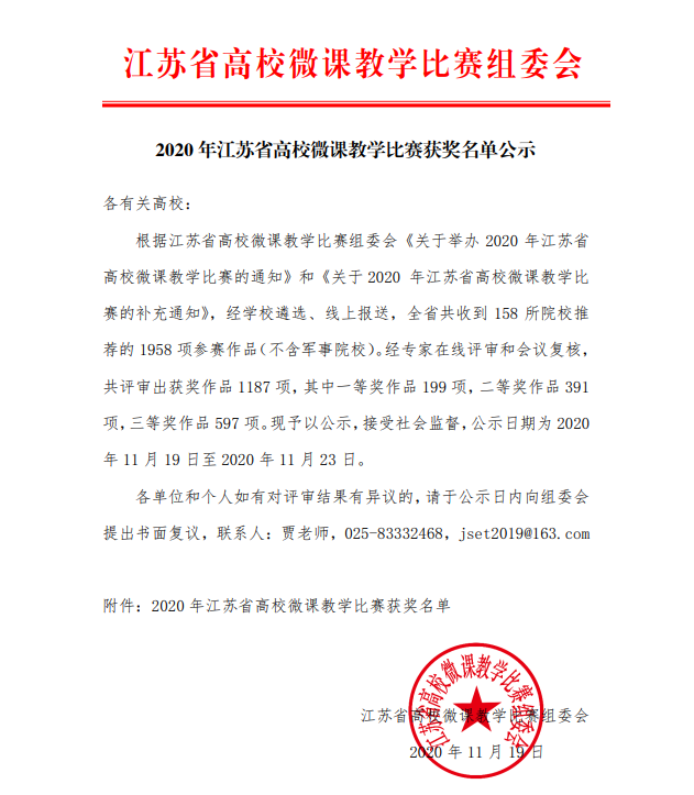 郭老师的作品从158所本科和高职院校推荐的1958项参赛作品中脱颖而出,与来自省内985、211本科院校和高职名校的教师同台竞技,通过“妙选题”、“磨脚本”、“精展示”、“思教评”等方式,凸显微课“短、小、精”的特质,终获一等奖,也为教学资源库建设再添新能量。