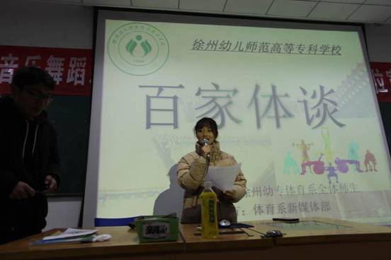 12月12日晚,体育系员工会的新媒体部在碧螺二楼阶梯教室举办了第四届“百家体谈”活动,体育系全体员工参加本次活动。活动分为三个进程:学长学姐分享经验、新生分享感受以及互动环节。