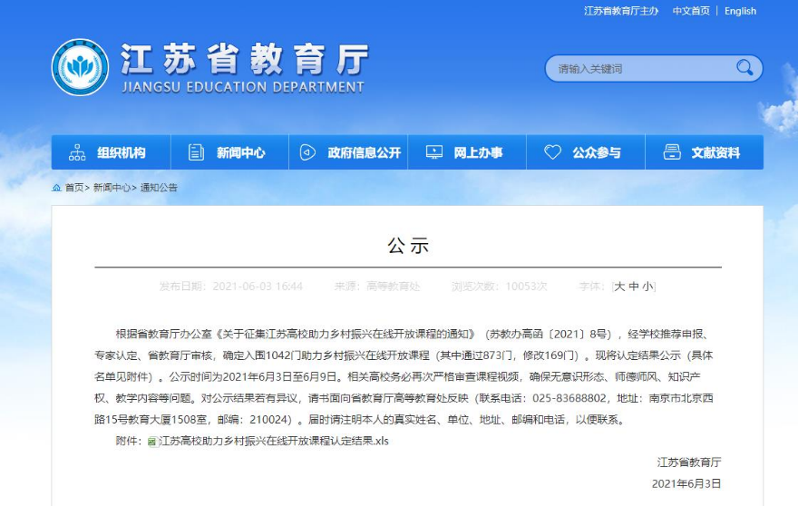 2021年6月30日,江苏省教育厅公示了乡村振兴在线开放课程入围名单。我系《老年常见病痛运动保健》课程经过自主申报、专家评审、教育厅复核等环节最终成功入围。