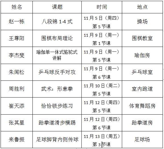 为促进体育系课程教学的有序进行,展示教师教学魅力,推广教学成果,全面提高教师的专业素养,增强教师设计、组织、调控课堂的能力,提供教师间相互学习的平台,体育系于11月5日—11月14日开展新教师课堂展示课活动。
