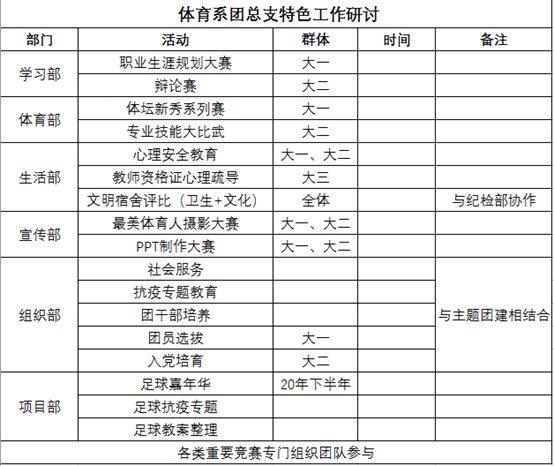 会议第二阶段,殷枭老师结合公司和院系的总体工作要求,对体育系团总支下一阶段的工作进行了总体部署,然后依次与各部门成员充分交换意见,进行了热烈的讨论,最终形式了体育系团总支下一阶段工作初步方案。最后,殷枭老师强调各部门要提高认识、认真研讨、开拓创新,对初步方案进行完善。