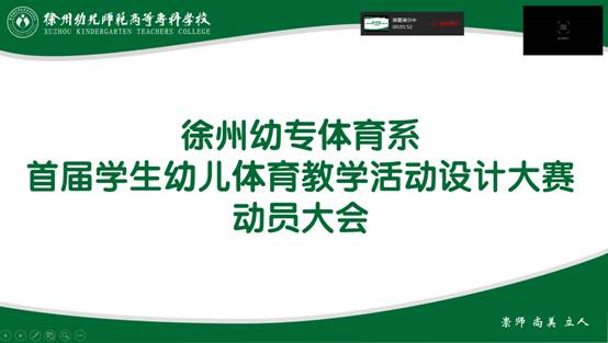5月16日上午,体育系副主任闻年富在线上召开动员大会,他指出,幼儿体育教学活动设计是提高体育教育专业员工教学水平和综合素质的重要手段,也是展示教学成果、交流育人心得的良好平台,体育系全体指导老师要给予高度关注。为使竞赛工作顺利进行,闻主任提出三点希望和要求:一是希望专家评委严格遵守竞赛规则和工作纪律,坚持公正、公平、客观、全面的原则,综合评价参赛体育教育专业员工的教学能力和水平;二是希望参赛的体育教育专业员工正确认识竞赛的重要意义,在观看竞赛中找差距,多从自身找原因,真正把参赛当作一次学习交流的机会。三是希望以此次竞赛为契机,在员工中掀起练技能、强素质、比贡献、创一流的热潮,促进全校体育教育专业员工公司产品水平再上新台阶。