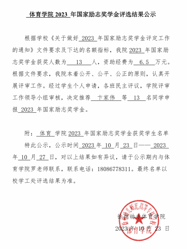 必一运动国家励志奖学金公司评审报告公示