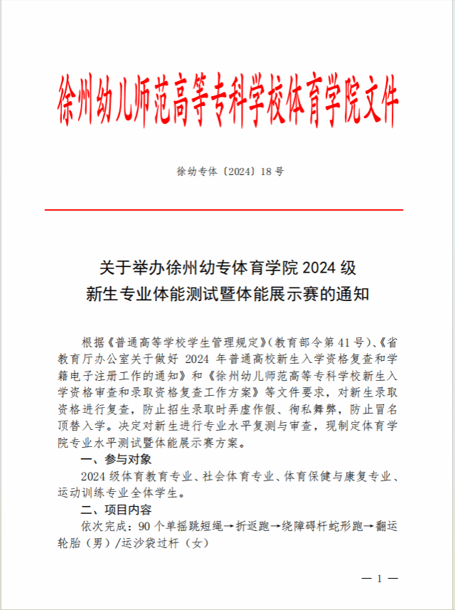 关于举办徐州幼专必一运动2024级新生专业体能测试暨体能展示赛的通知