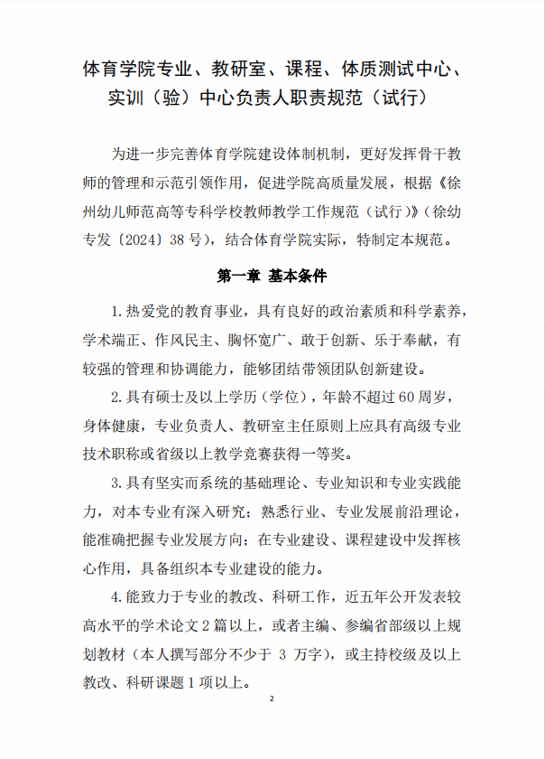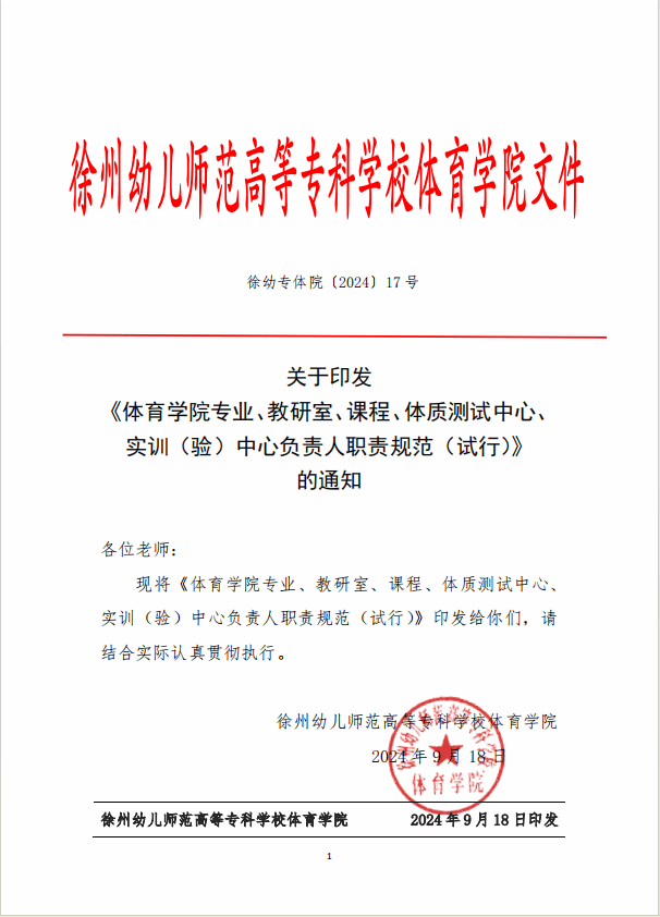 关于印发《必一运动专业、教研室、课程、体质测试中心、实训(验)中心负责人职责规范(试行)》的通知