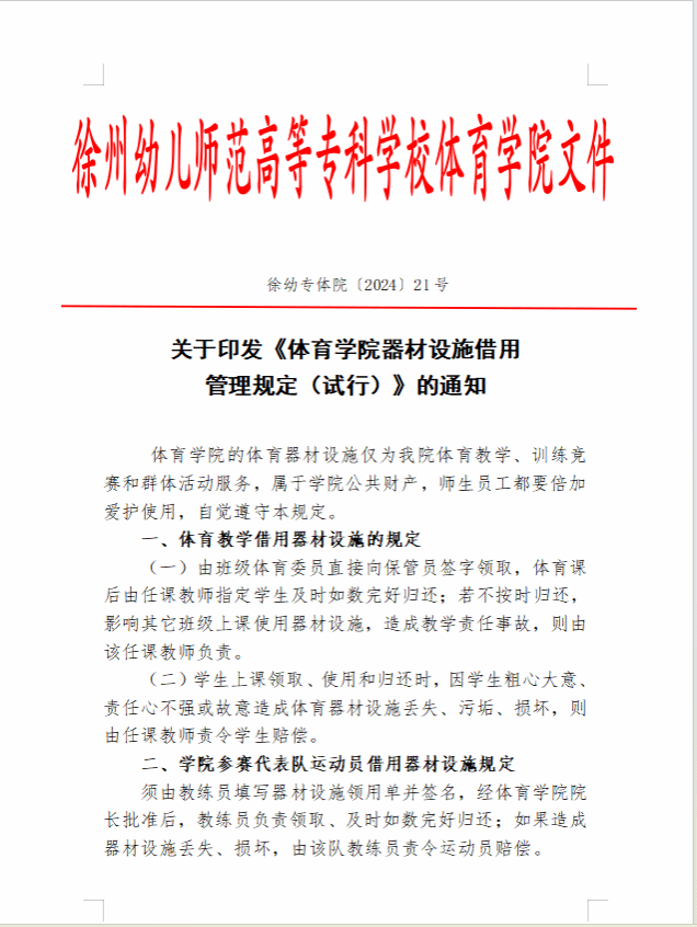 关于印发《必一运动器材设施借用管理规定(试行)》的通知