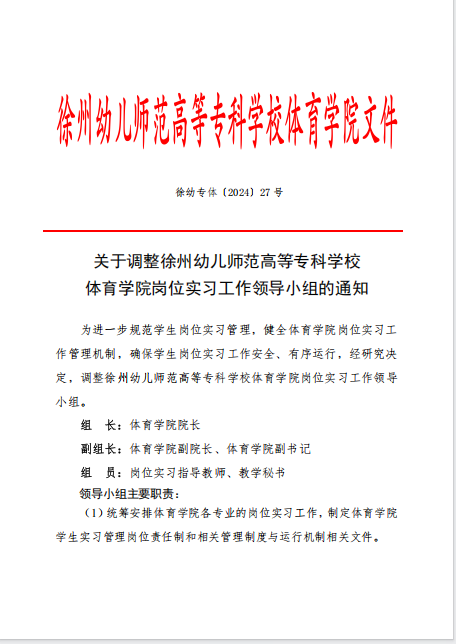 关于调整必一运动岗位实习工作领导小组的通知