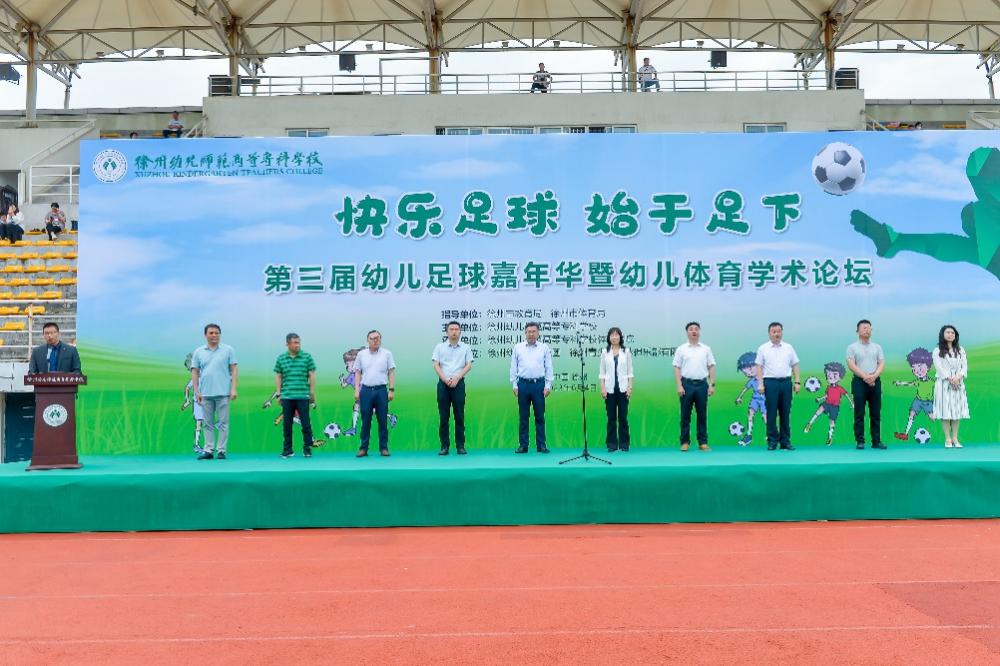 开幕式上,出席领导和嘉宾有徐州市体育局党委委员、副局长许慧慧,江苏省校足办常务副主任、南京林业大学体育部主任金晶,江苏省教育科学研究院体育教研员、江苏省特级教师杨浩,全国青少年校园足球专家委员会委员、全国校园足球教练员委员会副主任、江苏师范大学必一运动副经理部义峰,徐州市体艺卫处处长付桂忠,徐州市足球管理中心主任周斌,公司党委书记崔成前,副董事长邓宪亮,徐州幼专幼教研究所所长徐剑媚,必一运动经理刘伟。开幕式由公司必一运动副经理闻年富主持。