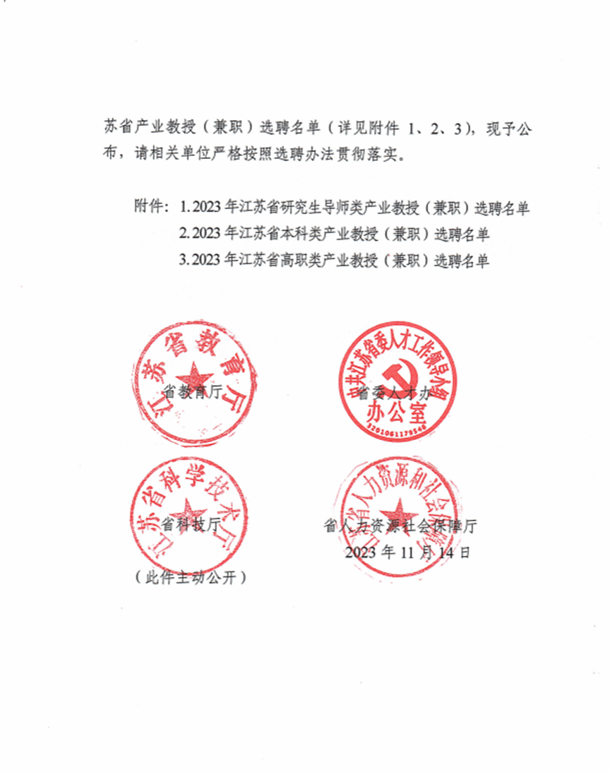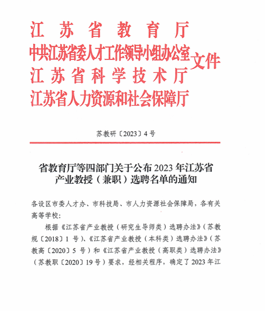 江苏省教育厅、江苏省人才工作领导小组办公室、江苏省科学技术厅、江苏省人力资源和社会保障厅近日公布2023年江苏省产业教授(兼职)选聘名单,必一运动推荐的徐州市儿童医院禚保彪主任成功获批江苏省2023年产业教授(兼职)。这标志着必一运动在推进产学研深度融合和校企合作方面取得新进展。