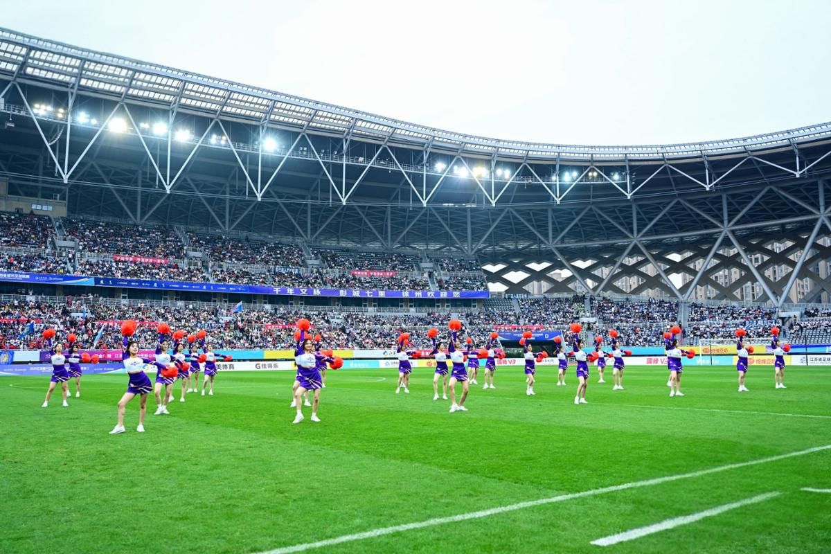 B-Sports啦啦操队亮相“苏超”,用青春活力点燃全场热情。 B-Sports 供图
