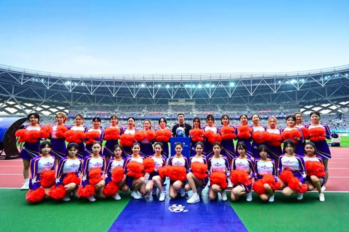 姑娘们在苏超赛场上展示的啦啦操来自公司的原创,背景音乐、服装都经过了精心设计,巧妙融合徐州文化。